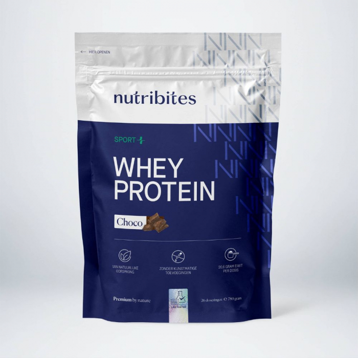 Nutribites Whey Protein bevat 780 gram, goed voor ongeveer 26 dagen bij dagelijks gebruik van één shake.