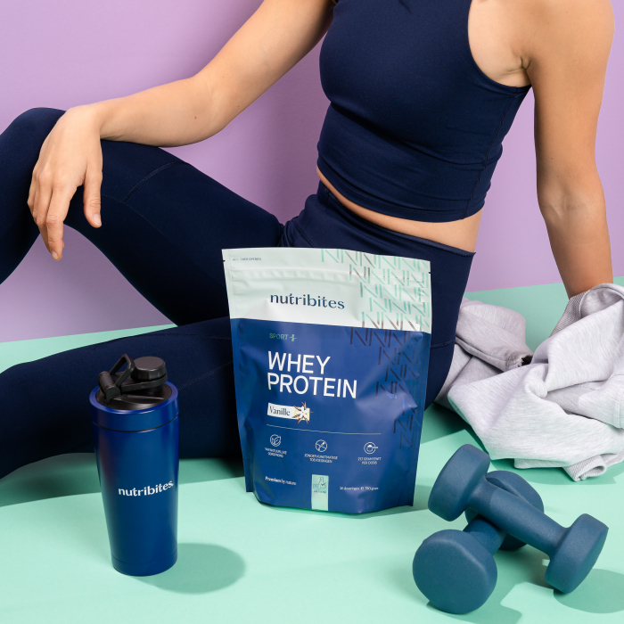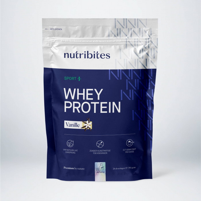 Met Nutribites Whey Protein Vanille krijg je in één shake 21,7 g hoogwaardige eiwitten binnen, afkomstig van Europese Unie koeien.